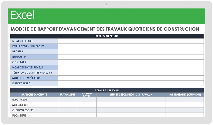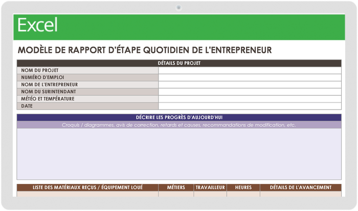 Télécharger le modèle de rapport d’avancement quotidien pour les entrepreneurs — Microsoft Excel