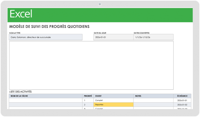 Télécharger le modèle d’outil de suivi quotidien de l’avancement