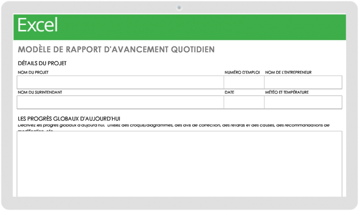 Télécharger le modèle de rapport quotidien sur l’avancement des projets